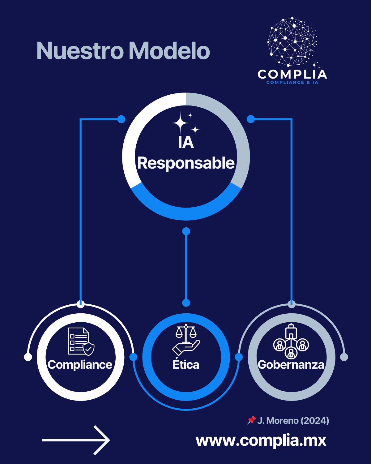 El Modelo COMPLIA de IA Responsable Nuestro modelo combina Compliance + Ética + Gobernanza para ayudar a las organizaciones a: